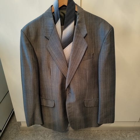 Hyväkuntoinen samettitakki ja kravatti. Merkki Callistone. Nouto.