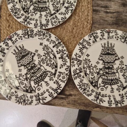 Meille ylimääräiset: Iittalan Ultimathle lautaset 4kpl, Arabian Taiga syvät 20cm 6kpl, lautanen syvä 18,2cm 5kpl, kermansaven mukit ja kermakko,kermakko