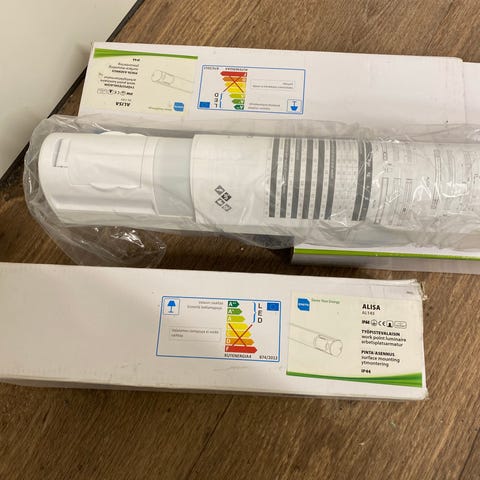 Kuvan wc valaisimet. kahdessa pistorasia päädyssä .kaikki kunnossa ja toimii. pituus näkyy kuvassa . 60cm