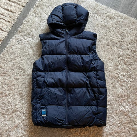 Myydään musta irrotettavalla hupulla varustettu toppaliivi höyhenestä ja untuvasta. Lämmin, pehmusteet hyvin lokeroissaan. Koko s unisex malli. Hupun toisen kiristysnarun muoviosa irronnut.
