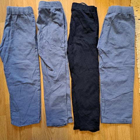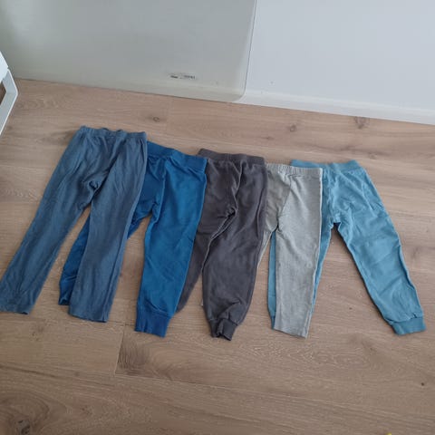 Vaatepaketti, housupaketti, kesähousut, housuja, collegehousut, trikoohousut, Lindex, koko 104, koko 110.