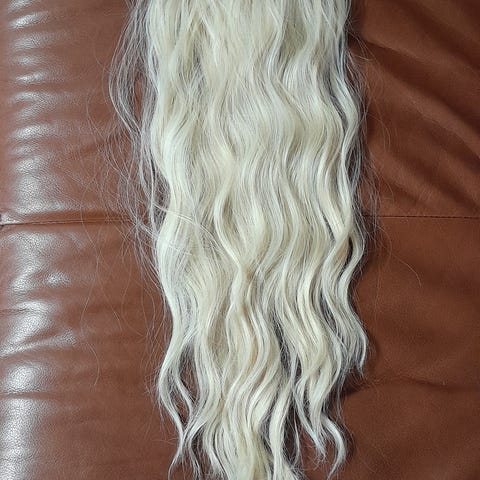 Pitkä kihara hiuslisäke. Luonnollinen sävy. Lämpökäsittelyä kestävä sekoite. Pituus 70cm. Postitus onnistuu.