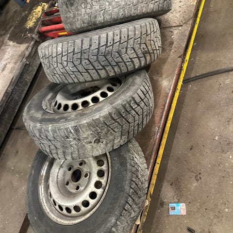 Nastarenkaat on todella vanhat paisto 04 eli suosittelen vaihtoa. Mutta kuitenkin pintaa 6mm, lähes kaikki nastat paikallaan ja kumikin sormenpäillä paineltavissa. Eli kovaan tarpeeseen voisi vielä välttää.