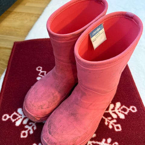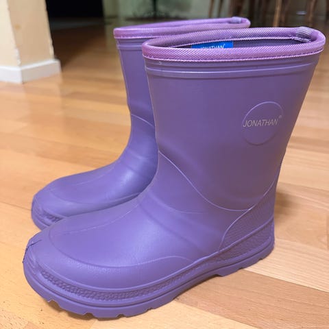 Jonathanin vuorelliset kumisaappaat, koko 36. Yhdellä lapsella, yhden talven käytössä olleet. Vuoressa 30% villaa.