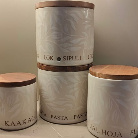 Kaksi Vanilja purkkia ilman kansia. Korkeus n. 7 cm ja halkaisija 11cm. Käyttämättömät. Hinta yhteensä 20 euroa +lähetyskulut. Pakkaan hyvin. Myynnissä myös muita Pentikin tuotteita, katso muut ilmoitukseni.
