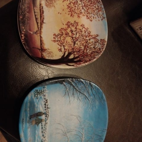 Kuvan Arabia kotiseudun vuodenaikataulut 4 kpl yht, 20 euroa. Suunnittelija Anita Rantanen - Siemens. Nouto.