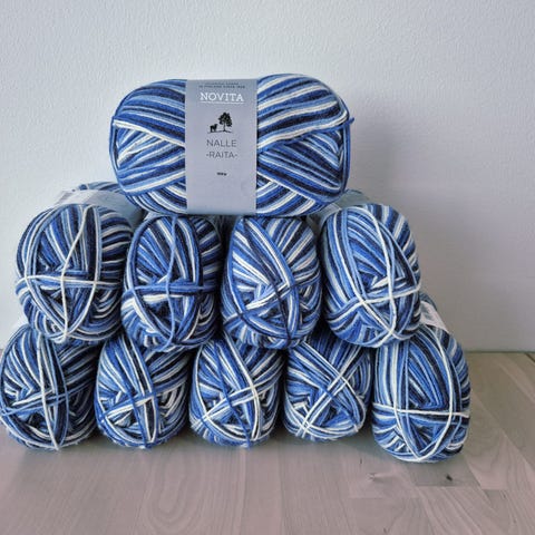 Sinivalkoinen Maamme raita lanka, 150gr