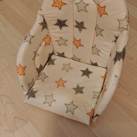 Hoitopöydän pehmuste ja syöttötuolinpehmuste. Yhdellä lapsella käytössä olleet, todella siistit.