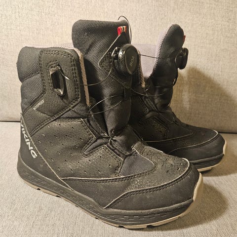 Käyttämättömät mustat Viking Espo gore-tex talvikengät kätevällä boa-kiinnityksellä. Koko 34. Laput poistettu ja sovitettu sisällä.