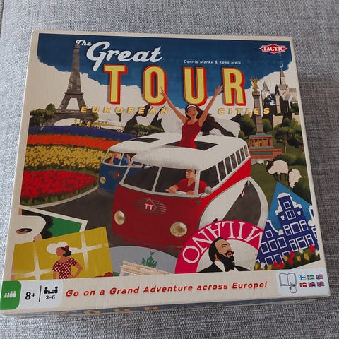 Great Tour Lautapeli on lautapeli, jossa pelaajat seikkailevat Euroopassa. Peli sopii 8-vuotiaille ja sitä vanhemmille. Pelissä on mukana pelilauta ja pelinappulat, jotka esittävät matkustamista eri kohteiden välillä.
