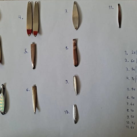 Erilaisia käytettyjä pilkkejä ja vieheitä.