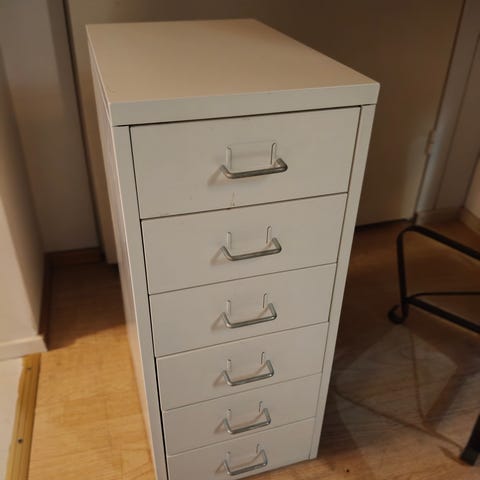 Yksi iso ja kaksi pienempää vedettävää lokeroa. Voi vaihtaa kumminpäin vain.