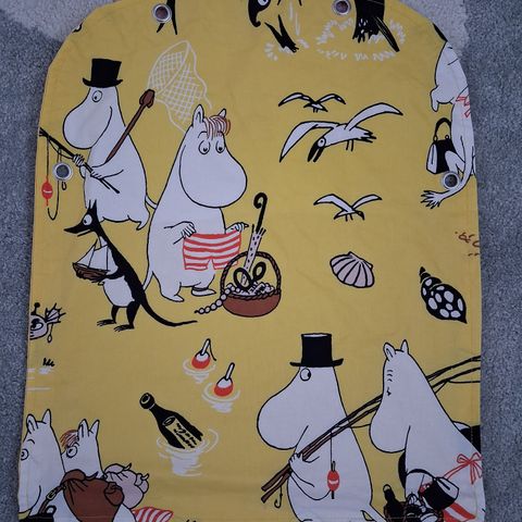 Itse ommeltu muumiverho, puuvillaa. Leveys 147 cm, Pituus 56-62 cm. Oikein siisti kunto. Savuton koti, taloudessa hamsteri.