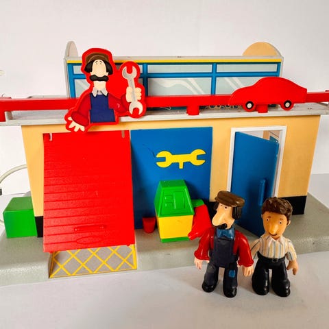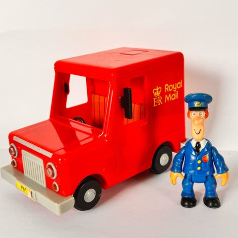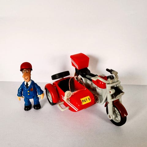 Postimies pate sarjan juna-asema talo ja hahmo + paketteja! Leikitty, mutta hyvä kunto!