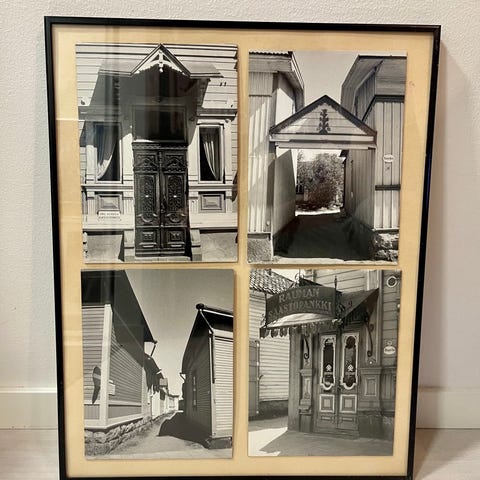 Valokuvasarja (4kpl) jossa on useita mustavalkoisia kaupunkimaisemia Tammerkosken ympäristöstä eri kehyksissä. Toinen sarja (4kpl) luontoaiheisia valokuvia. Valokuvat vuoden 1937-1940 välillä otettuja. Kuvista voi tehdä tarjousta erikseen tai paketteina. Lisätietoja ja tarjoukset viestillä.