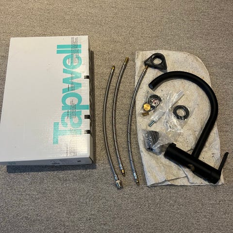 Tapwell ARM984 keittiöhana, messinkipintainen. Hana käytetty paikallaan, jonka jälkeen seisonut varastossa. OVH 590€.