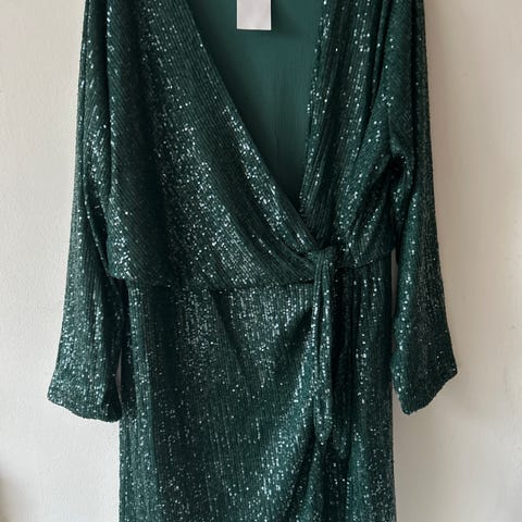 Upea hopea paljetti coctail ja juhla mekko, koko XXL, avoin selkä osa, pituus 71 cm + hapsut.