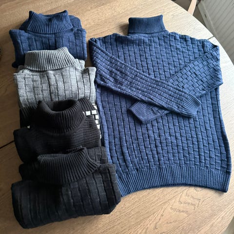 Myynnissä kuvien lämpimät pooloneuleet kokoa XL.
