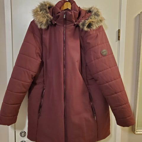 Erittäin hyväkuntoinen, paksu ja lämmin Mckinleyn viininpunainen talvitakki. Puolipitkä. Irrotettava huppu.