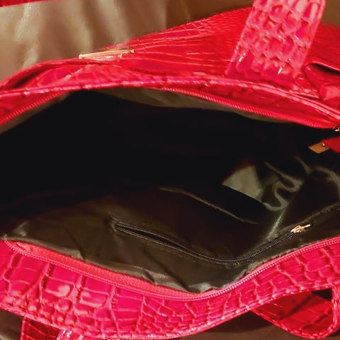Mahtuu hyvin tavaraa ja metallinen vetoketju ja mukana myös olkahihna.