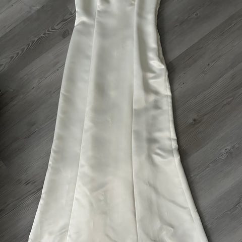 Haloselta ostettu,kerran päällä ollut käsinkudottua silkkiä oleva juhlamekko. Niskasta solmittava. Sivussa vetoketju. Edessä ja takana pienet halkiot. Väri vaaleanruskea/beige
