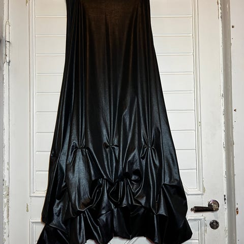 Musta satiini laahushelmainen pitkä maxi hame, koko M