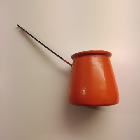Valkoinen reilun kokoinen kastikekaadin. Ehjä ja hyväkuntoinen. Valmistajasta ei tietoa. Korkeus 6 cm, leveys korvineen 22 cm, vetoisuus n. 6 dl.