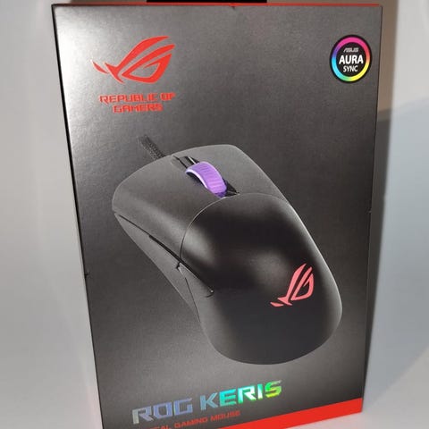 ASUS ROG Keris pelihiiri, musta väri. Suunniteltu pelaajille, tarjoaa tarkkuutta ja mukavuutta. Sopii useimpiin käyttöympäristöihin