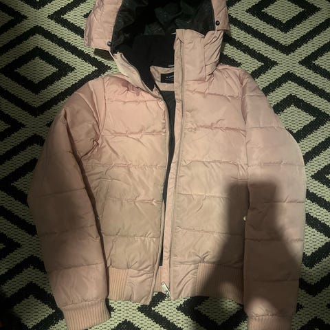 Everest lasten takki, koko 158, vaaleanpunainen väri. Takissa on vetoketjulliset taskut ja huppu, jonka reunassa tekoturkis. Sisäpuolella musta vuori. Takki on suunniteltu tytöille ja sopii ulkoiluun ja arkikäyttöön. Molemmissa hihoissa vähän tummaa, joka ei haittaa käyttöä.