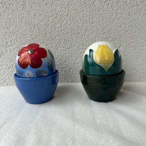 Myydään Arabian posliiniset käsinmaalatut Ikikukat. Nämä olivat yllättävän suosittuja 80–90-luvuilla, ja monet tehtiin lahjaksi tai kausituotteiksi (esim. pääsiäinen).
