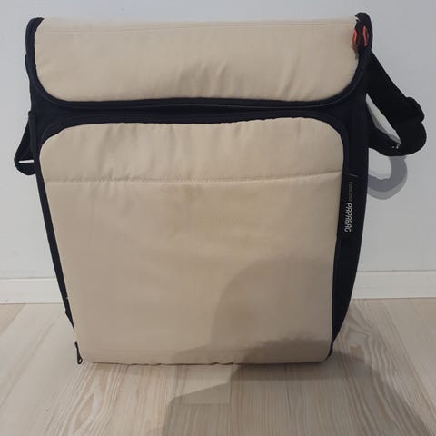 Tarranauhalla kiinnitettävä pieni organizer (koko 30 cm × 15 cm). Sisäpuolella kuminauha ja tarranauhalla erotettava lokerikko.