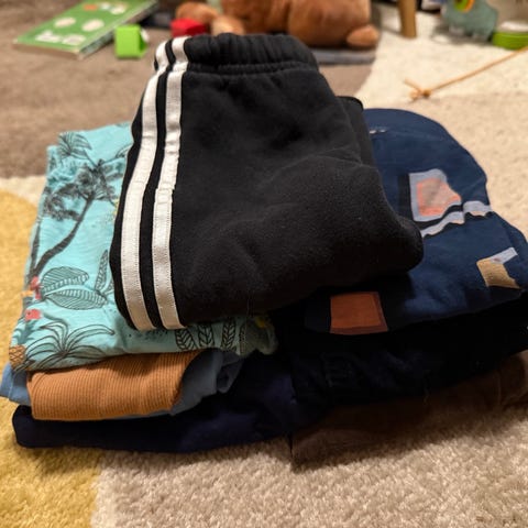 Poikien vaatepaketti, koko 74. Enemmän ja vähemmän käytettyjä, vaaleansininen neuletakki melko kulunut ja pyjamassa taskussa tahraa. Useita merkkejä mm. Lindex, Peuhu ja POP. Hajusteeton LV Pikkuväki-pesuaine käytössä.