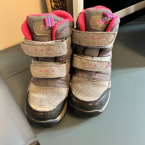 Reima lasten välikausikengät, koko 28, värit harmaa ja pinkki. Kengissä tarrakiinnitys ja kumipohja. Unisex-malli, soveltuu sekä tytöille että pojille.