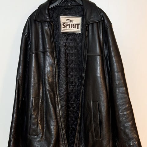 Miesten nahkatakki, melko paksua nahkaa. Kokomerkintä M, mutta lähempänä L kokoa. Vuori ehjä ja puhdas. Tuotu Briteistä.