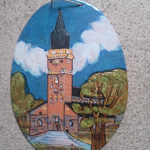 Vanha Turun linna aiheinen kehystetty ristipistityö