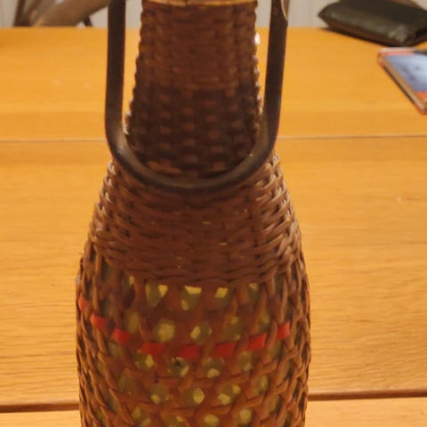 Puinen viinipullo.
