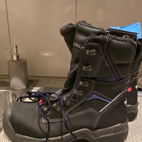 Lämpimällä turkisvuorella, kuumuutta kestävällä pitävällä ulkopohjalla varustettu talvinahkasaapas. Erinomaiset työkengät talvisiin ja vaativiin ympäristöihin. PU-nahkapinta on hyvin kulutusta kestävää