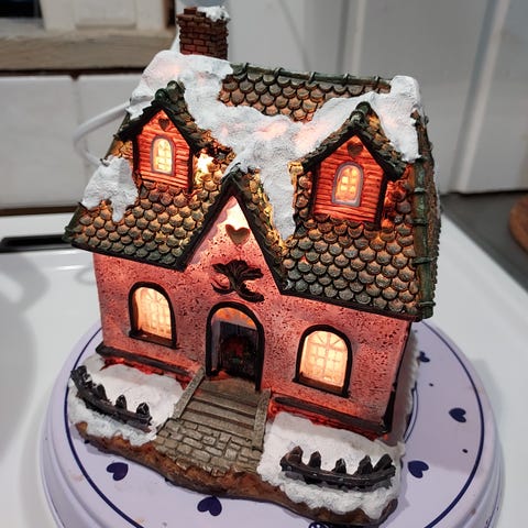 Myynnissä kuvien käytössäollut mutta ihan kivankuntoinen valotalo. Ylhäällä tornissa on tuunailtu pallo, sinne voi vaikka halutessaan laittaa ristin tms. Korkeus on katonharjaan 15 cm, ihan ylös 26 cm. Leveys on 18 cm, syvyys 15 cm. Lähetän ja kulut ovat 8,50 e, kulkeutuu myös Turkuun ilmaiseksi