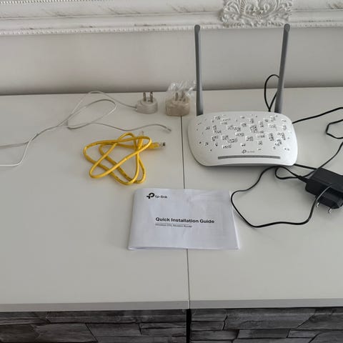 Tarpeettomana TP-Link Modeemi, mukana tarvittavat liitäntäkaapelit.