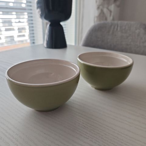 Erittäin hyväkuntoinen Kermansavi Oliivi-sarjan iso vihreä kulho