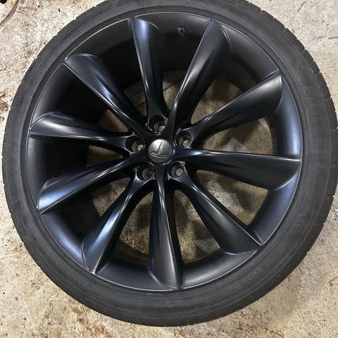 Tästä koko vajaa sarja 750€ tai yksitellen 300€/kpl Teslan alkuperäisiä vanteita (renkaat ympärillä saa mukaan).