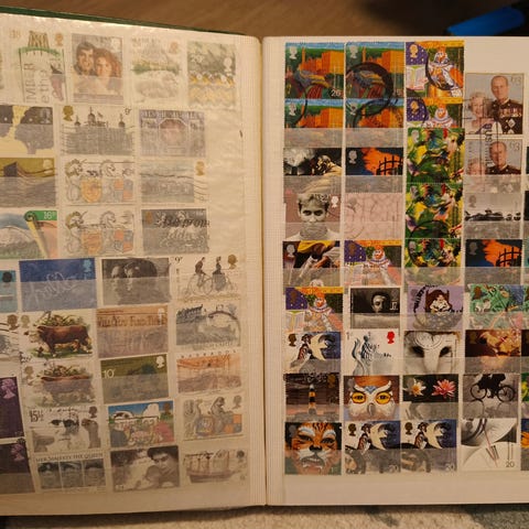 Postimerkkikansio Lindner, 30 lehteä. Postimerkkejä etelä - amerikasta, yhteensä n. 630 kpl.