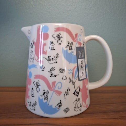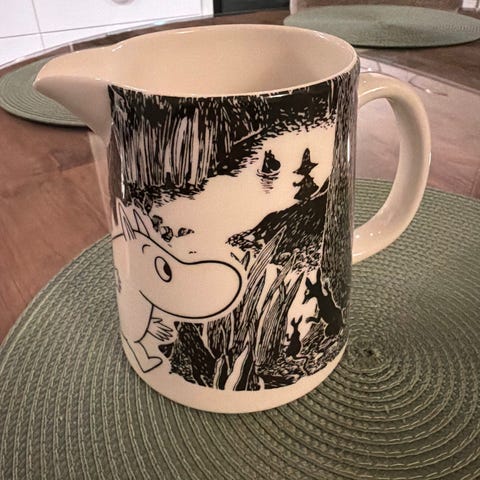 Käyttämätön muumikannu, virheetön. Nouto Pälkäneeltä, kulkeutuu Kangasalle.