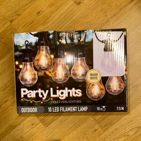 Party Lights ulkokäyttöön soveltuvat koristevalot, joissa on 15 lamppua ja 4,5 metrin pituinen johto. Valosarja sisältää 300 cm virtajohdon ja 50 cm välin lamppujen välillä. Valot sopivat muille vuodenajoille ja ovat tarkoitettu ulkokäyttöön.