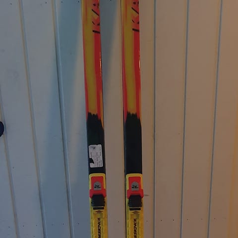 Vähäisellä käytöllä ollut, pohjat siistit. Kuljetusvaurio suksiboksissa tullut ja toisen suksen takaosasta lohjennut sivusta pala pinnasta pois noin 1 x3cm alalta. Siksi kuntoluokka tyydyttävä