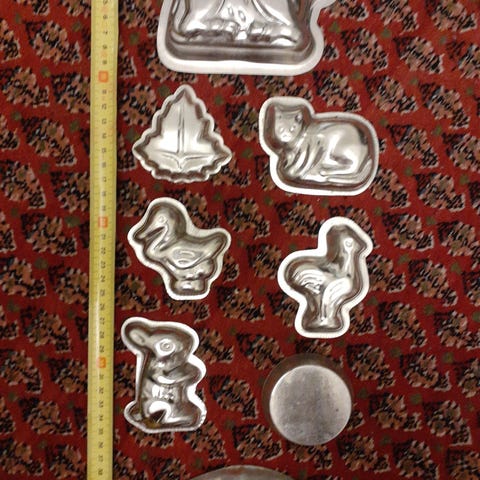 Vanhoja suklaamuotteja mm simpukka, rapu