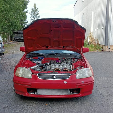 6x16 et 45 hondan vanteet, kesärenkaat aika lopussa mutta siistit vanteet.