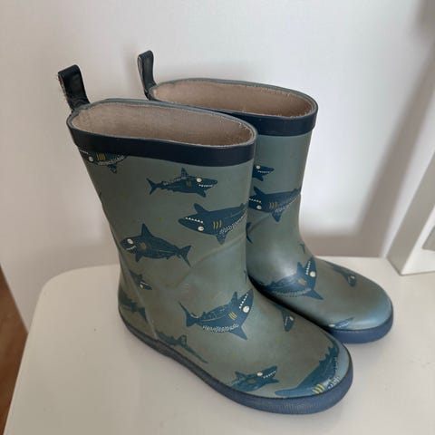 Wellipets hauskat pitkävartiset sammakko kumisaappaat, koko 28. Pohjallisen sisämitta 18cm. Toisen kengän sammakon silmä hieman kulunut.