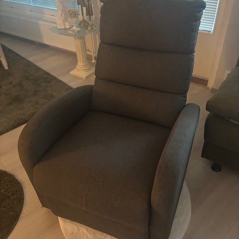 Vaalean beige nojatuoli. Istuin osassa pieni nirhauma kankaassa. Näkyy kuvissa. Ei vaikuta käyttöön.