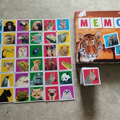 Pippi ja Muumin -muistipeli ja kolme erilaista palapeliä, joissa on eläin- ja maisemakuvioita. Pelit sopivat lapsille ja kehittävät muistia sekä hahmotuskykyä.